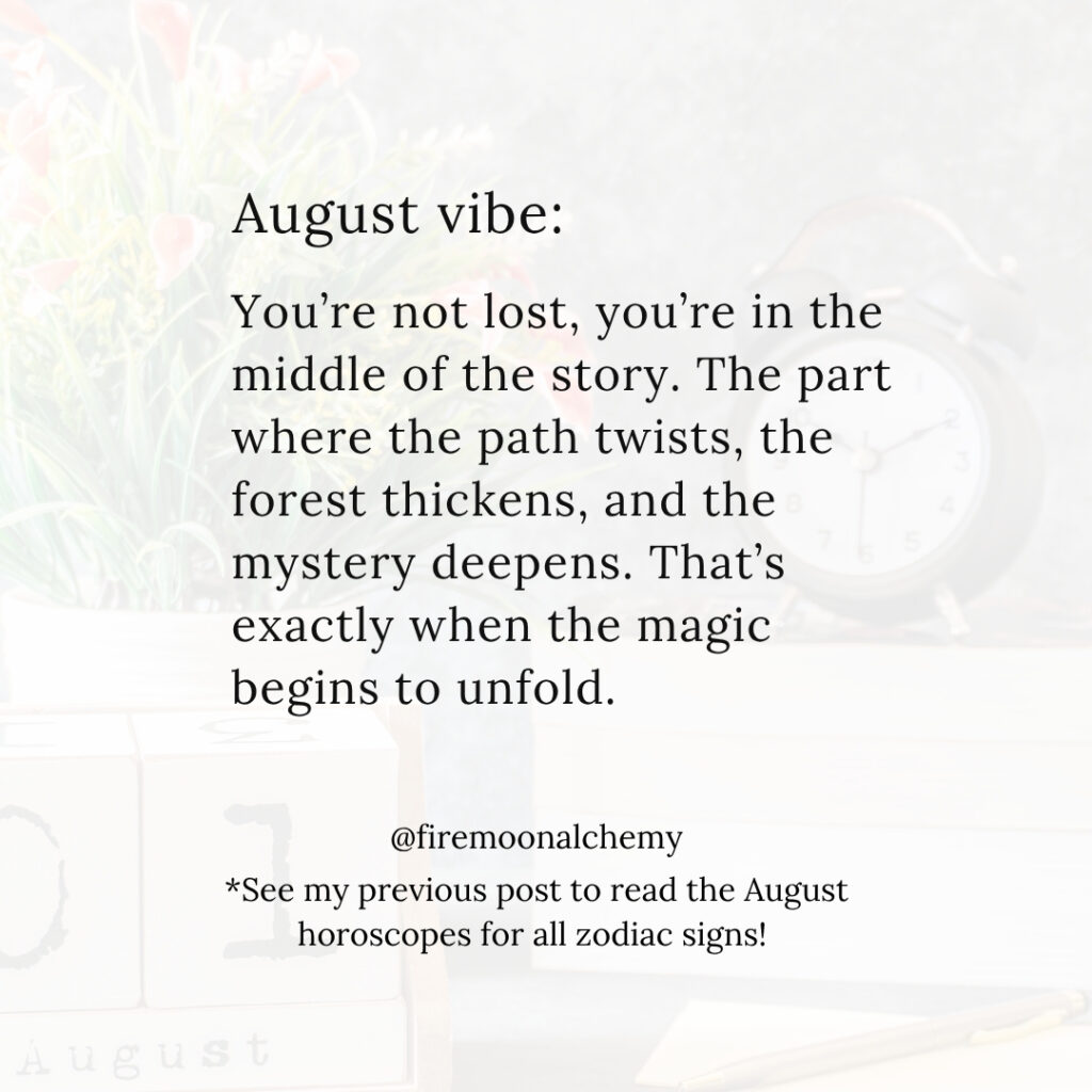 Clearing your energy under the August 9 Aquarius Full Moon sets the stage for a fresh start to align your energy and goals with a series of upcoming supportive transits. The momentum begins with Mercury stationing direct in the sign of Leo on August 11. For more insights, check out your August horoscope in my previous post to see what’s ahead for your sign!